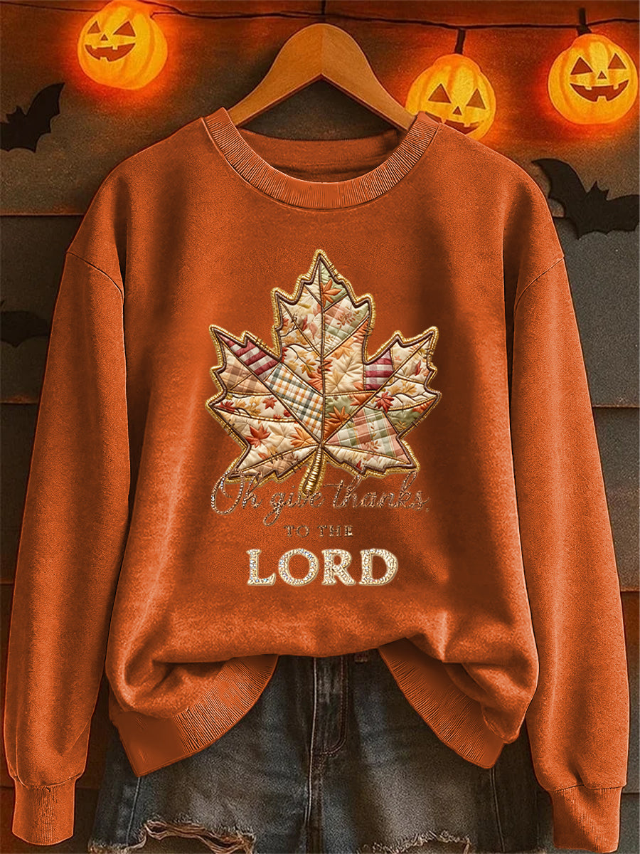 Благодарността кленов лист пачуърк случайни екипаж врата пуловер