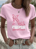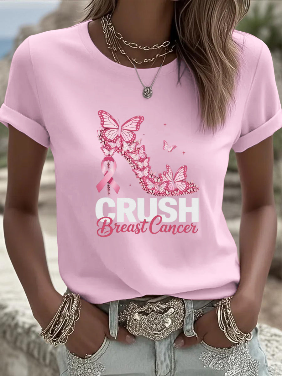 Дамска европейска розова тениска, украсена със секси обувки с висок ток, цветя и превенция на рака на гърдата панделка печат