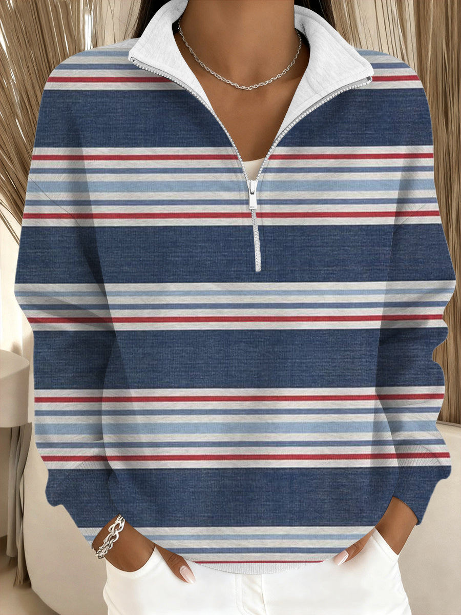 Дамска класическа синьо-червена ивица щанд-яка суитчър