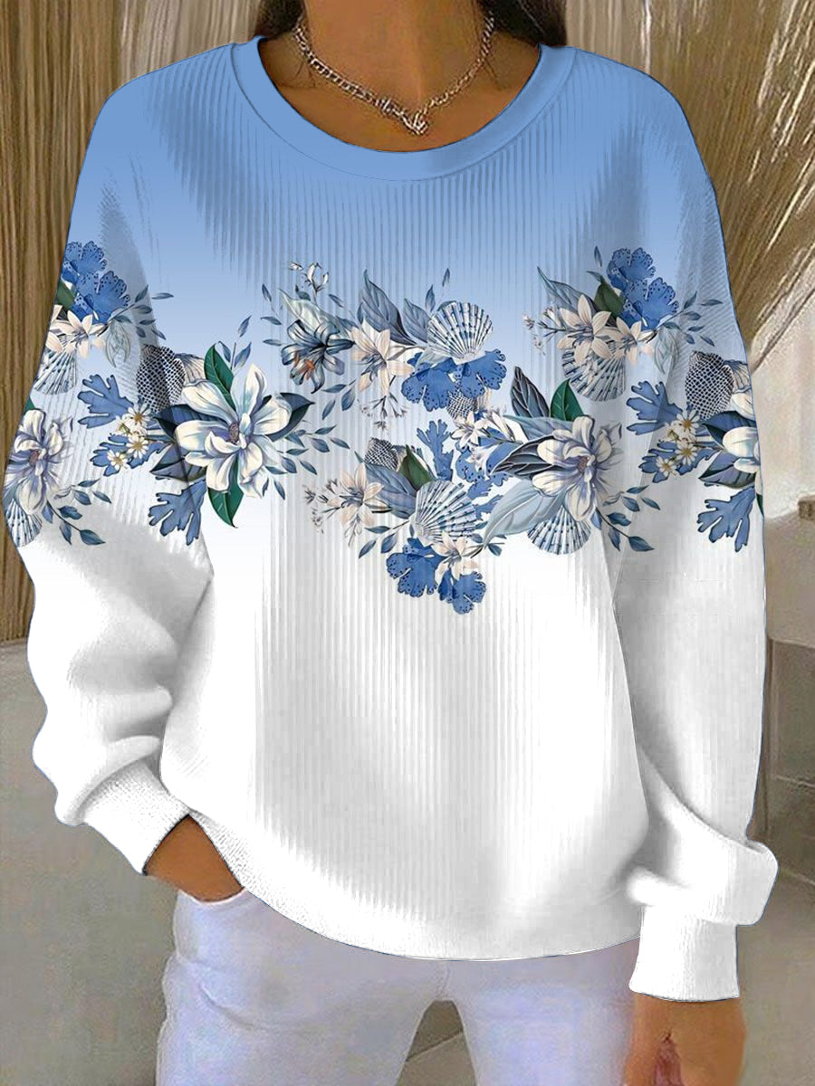 Дамска прясна синьо-бяла градиентна суитчър с флорален и черупков печат