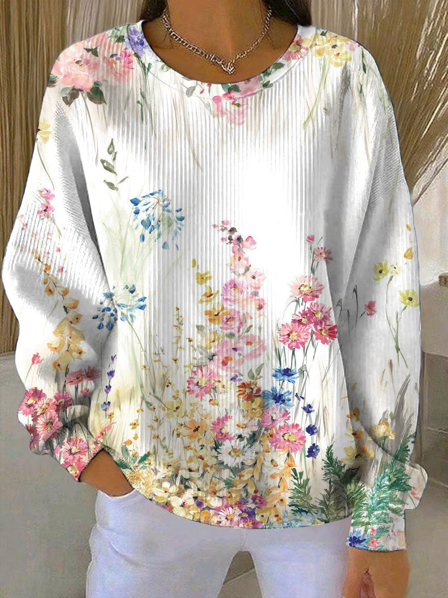 Дамски весел многоцветен диви цветя печат суитчър