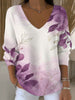 Дамски мечтателен пуловер с лилаво листо v-neck
