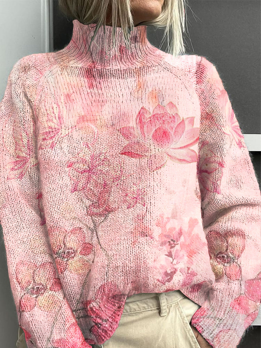 Жените реколта изкуство животински печат уютен плетен пуловер