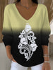 Дамски стилен градиент бяла роза v-врата пуловер