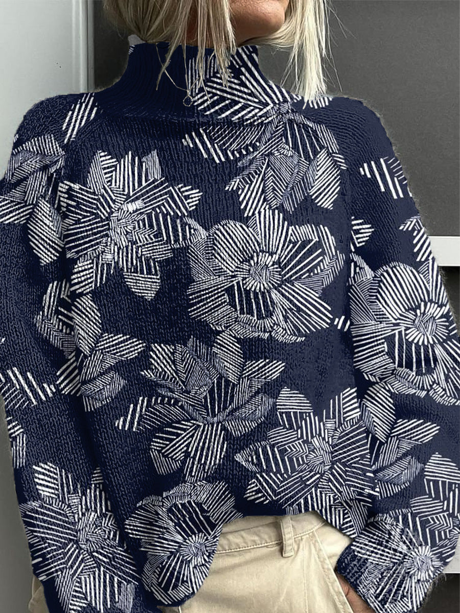 Жените реколта изкуство животински печат уютен плетен пуловер
