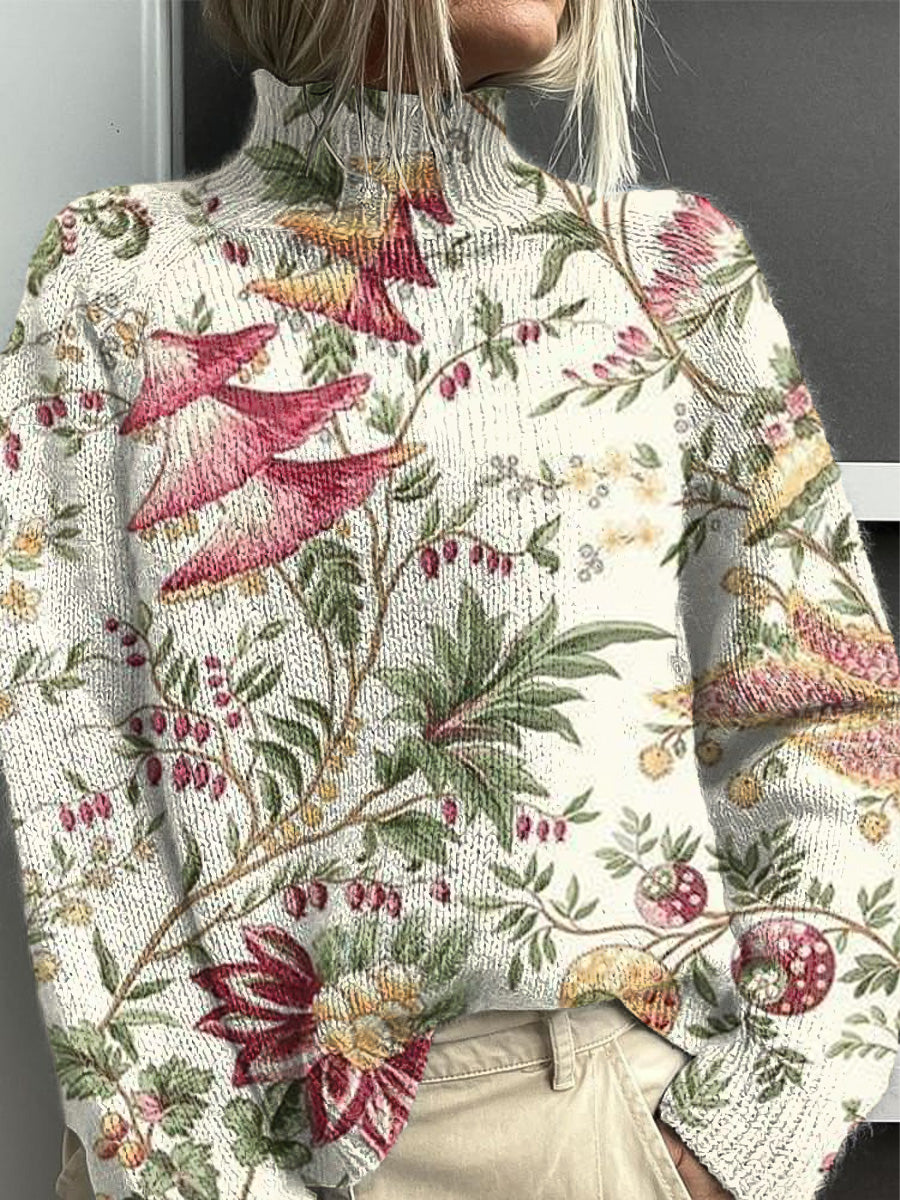 Жените реколта изкуство животински печат уютен плетен пуловер