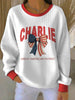 Дамски чарли кърк печатни кръгла врата с дълги ръкави суитчър