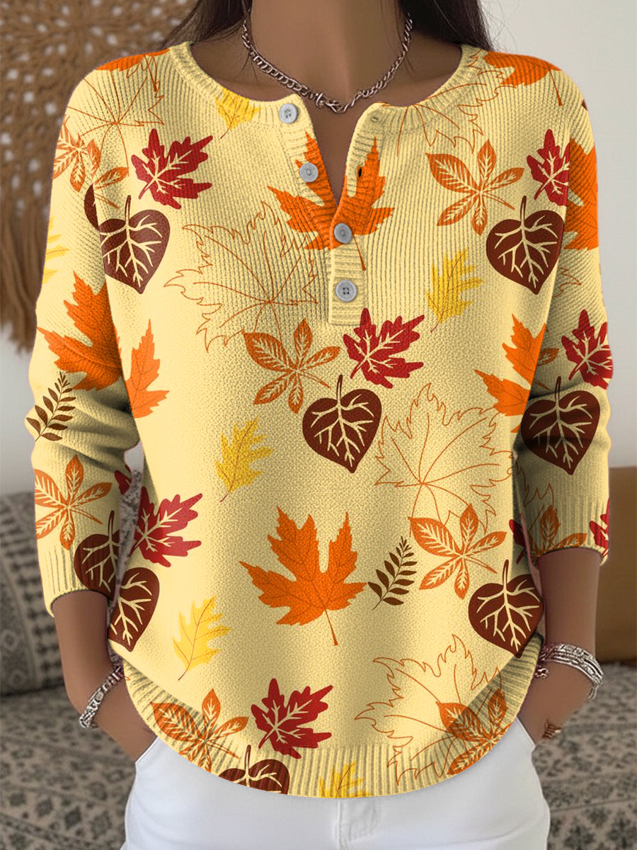 Жените благодарност цветни клен лист изкуство v-врата пуловер