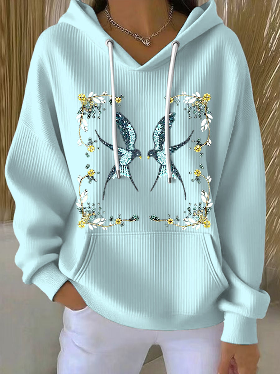 Жените деликатен флорална рамка птичи печат светло синя качулка
