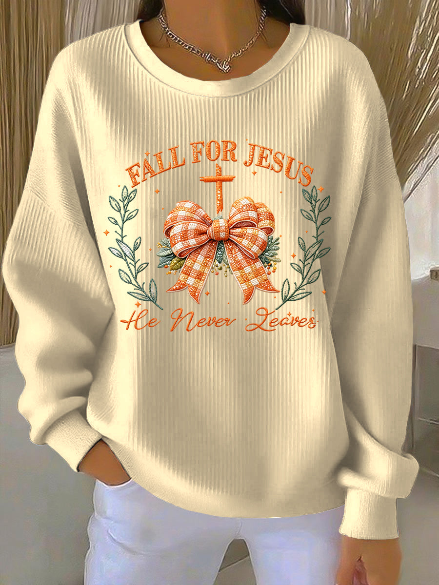 Жените на благодарността лък флорални случайни екипаж врата пуловер