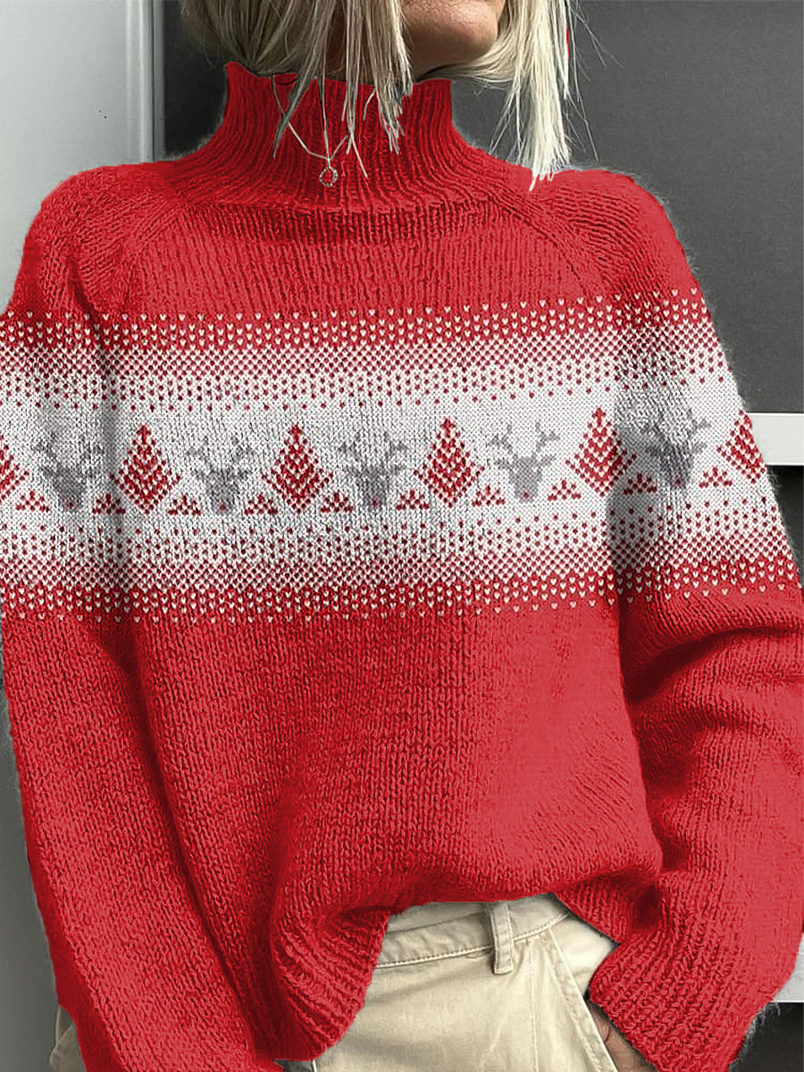 Жените реколта коледа елени изкуство висок врат пуловер
