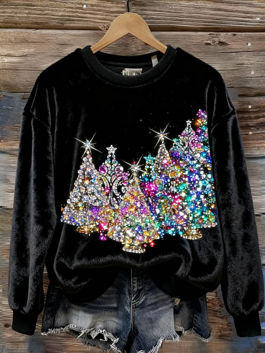 Жените реколта коледа изкуство печат уютен фланел суитчър