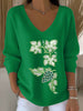 Жените реколта изкуство животински печат уютен плетен пуловер