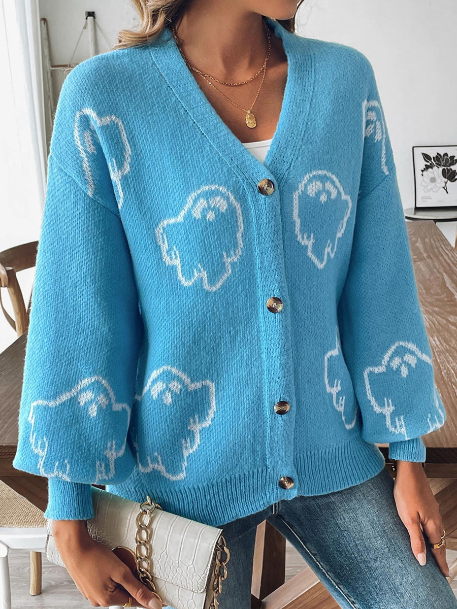 Жените реколта изкуство животински печат уютен плетен пуловер