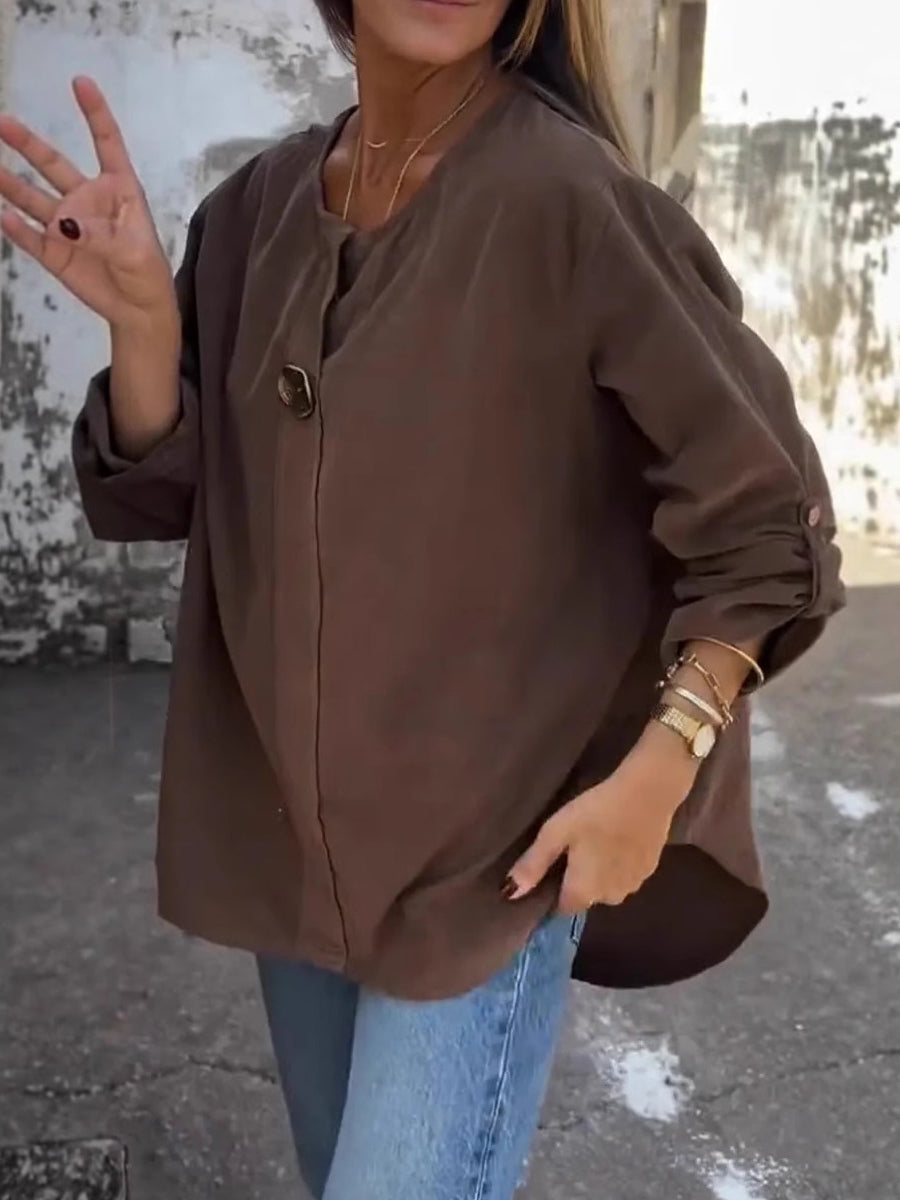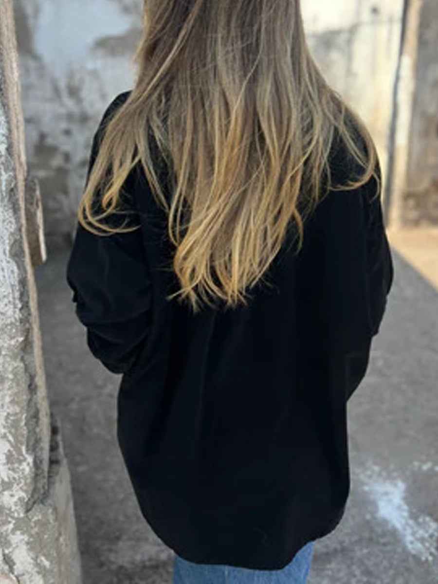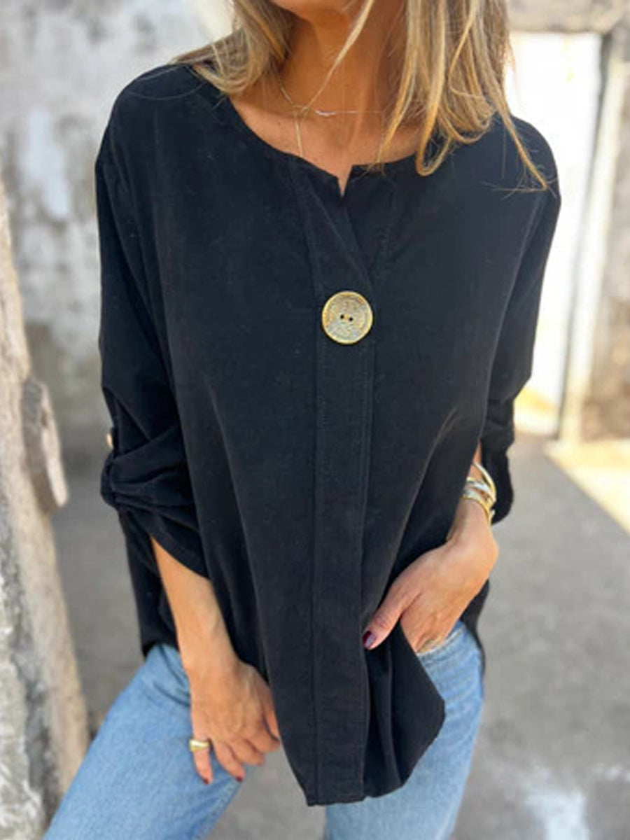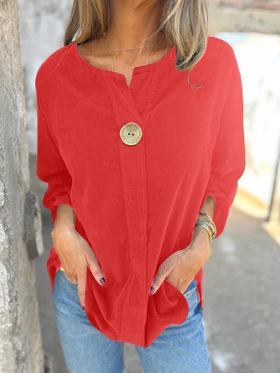 Жените реколта corduroy v-врата с дълги ръкави отгоре