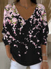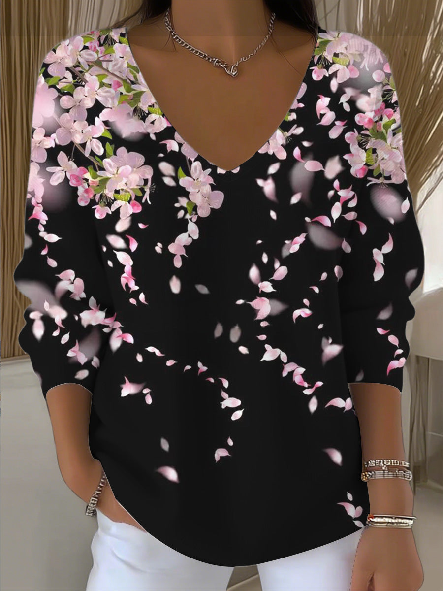 Жените романтична череша цъфтеж печат черен v-врата отгоре