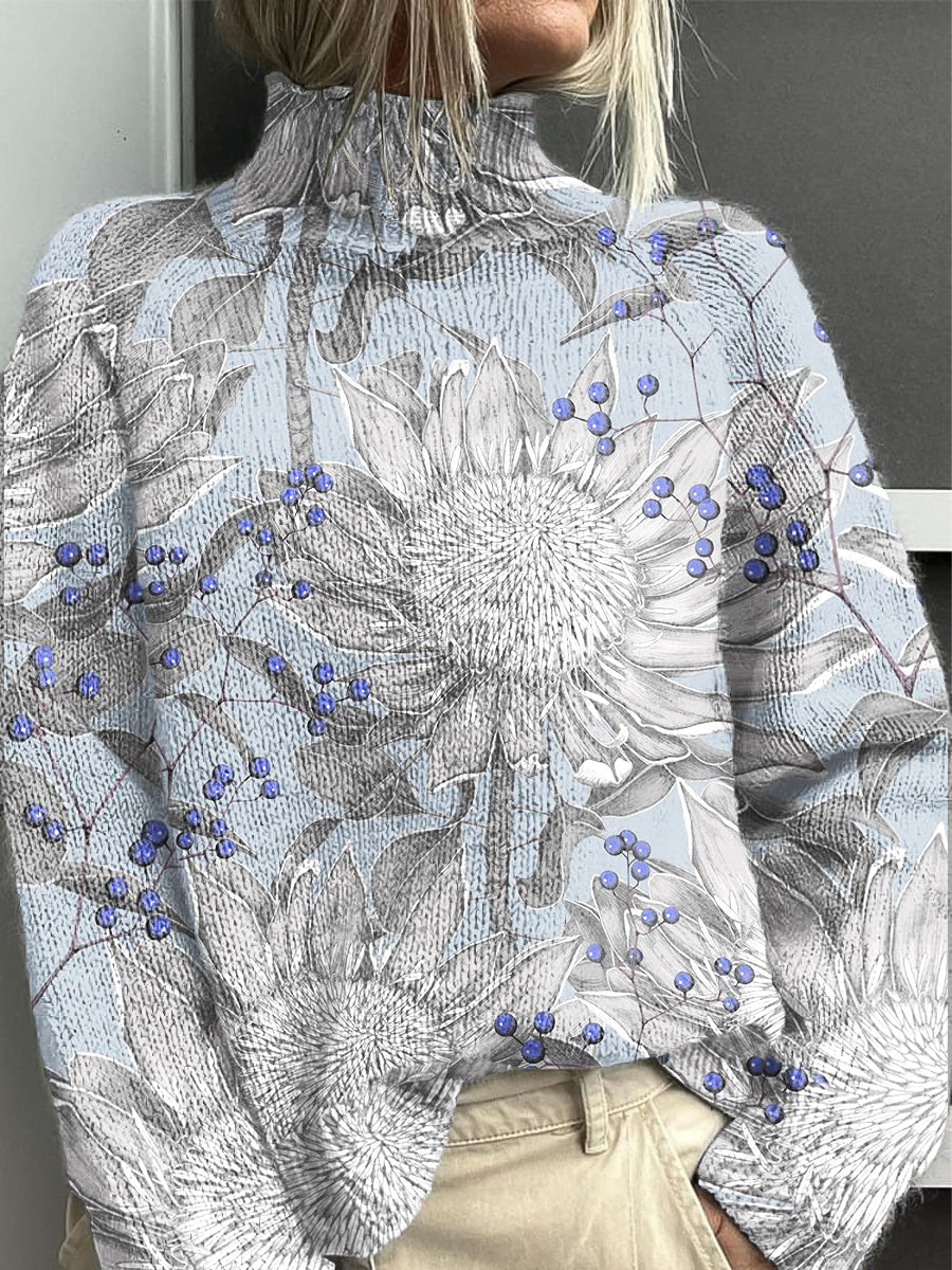 Жените светло синьо флорални случайни пуловер