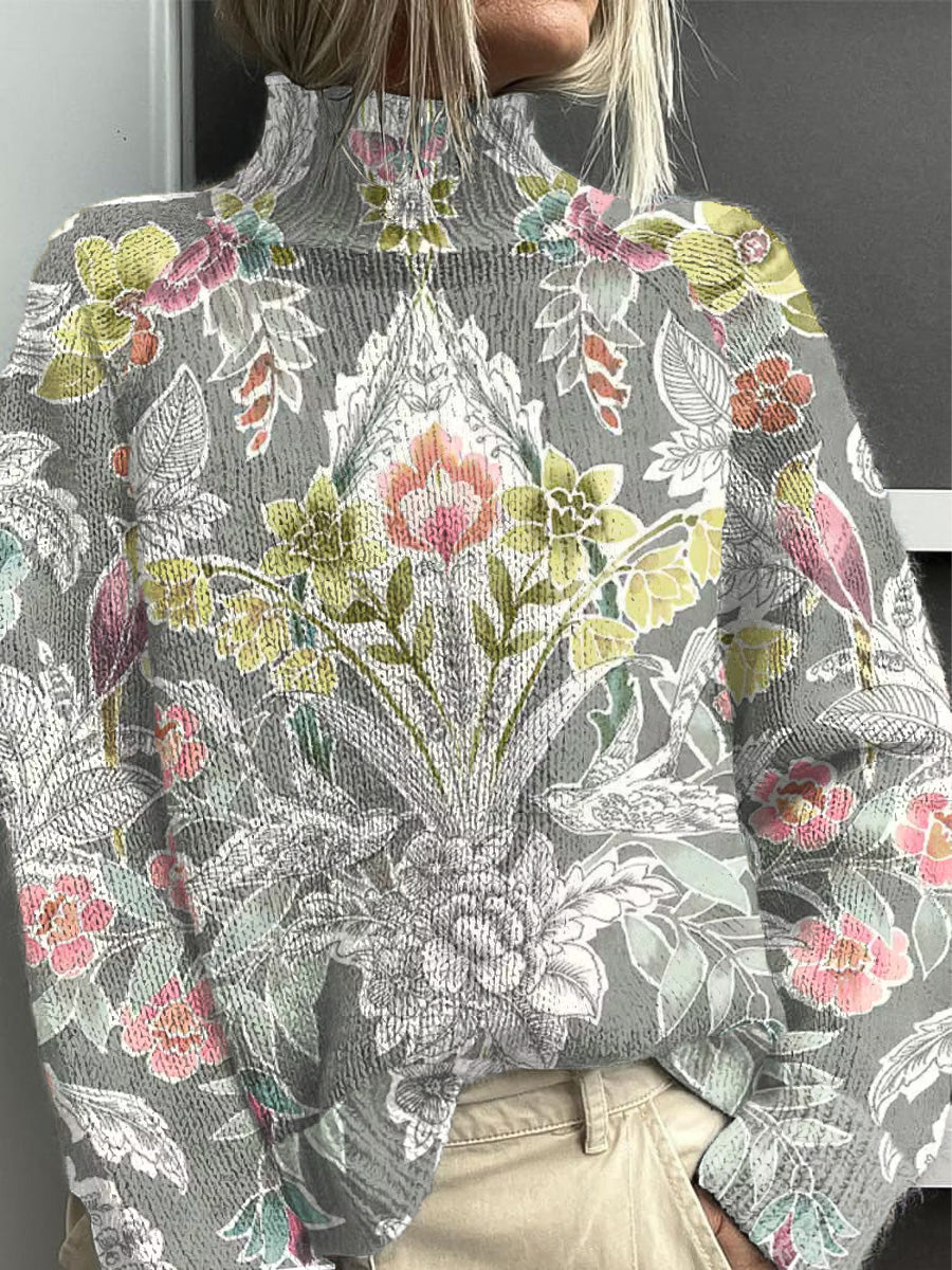 Жените реколта изкуство животински печат уютен плетен пуловер