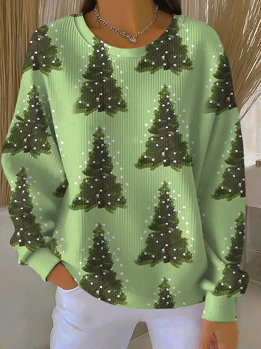 Коледно дърво живопис с маслени бои изкуство екипаж врата пуловер