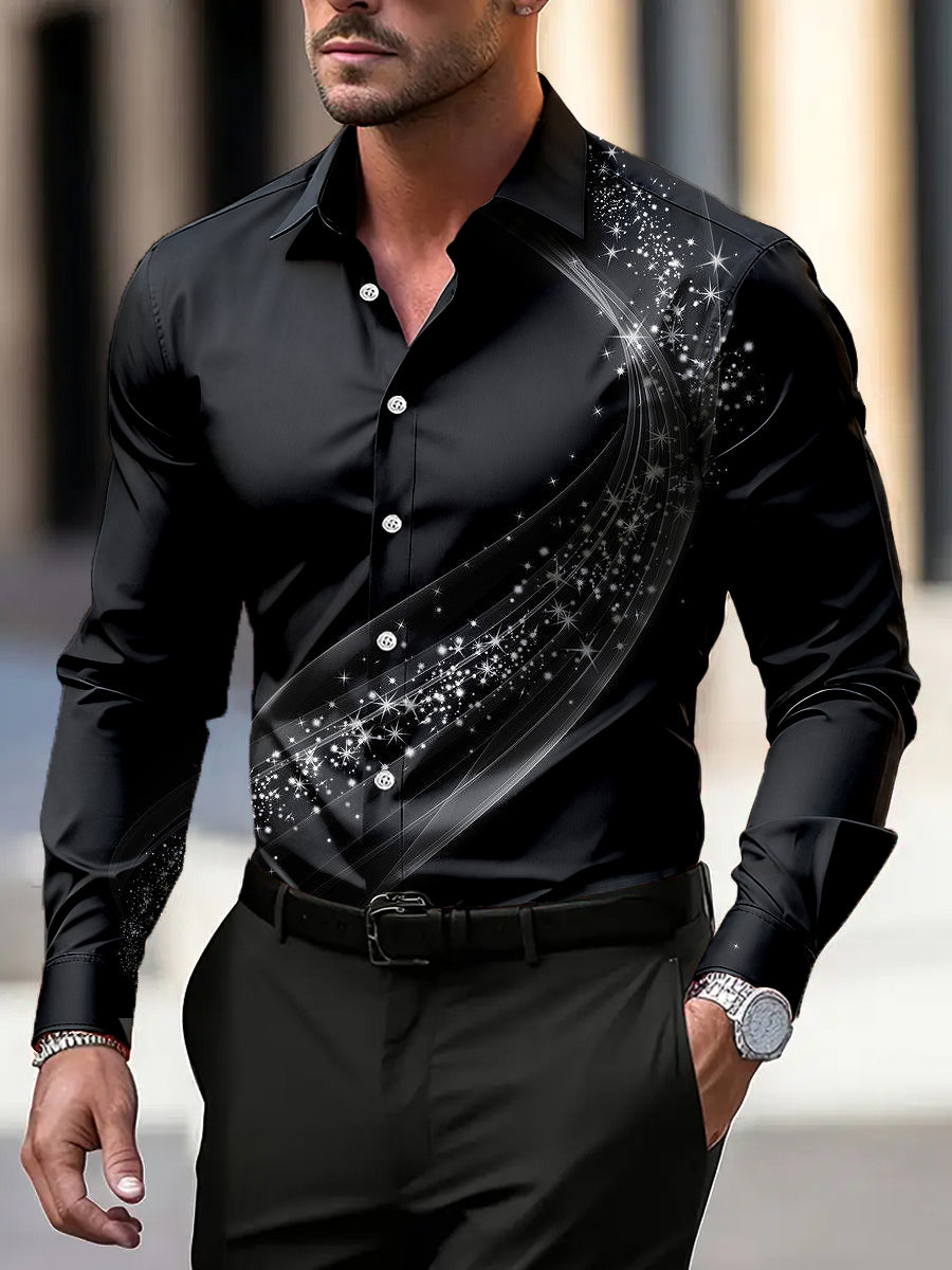 Мъжки реколта блясък текстурирани изкуство с дълги ръкави риза