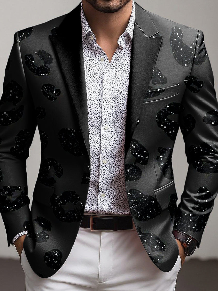Мъжки реколта завет леопард печат бизнес страна блейзър