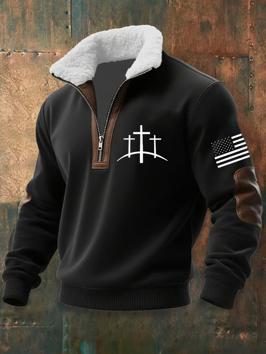 Мъжки реколта изкуство вяра случайни козина яка дебел суитчър