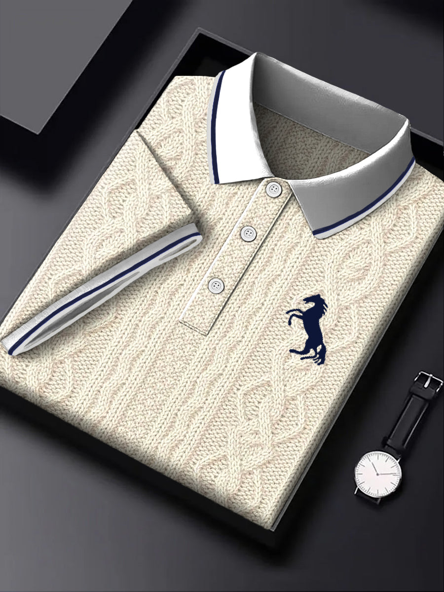 Мъжки реколта текстурирани пачуърк артистичен бизнес поло риза