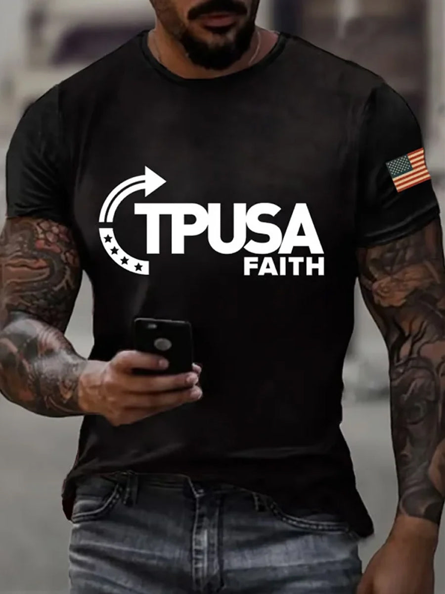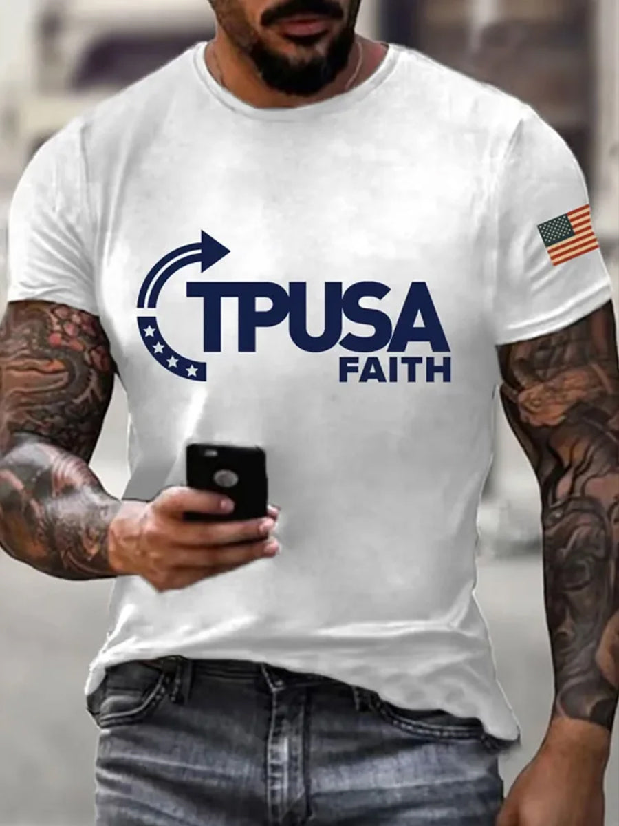 Мъжки реколта чарли кърк американски флаг печат възпоменателна тениска