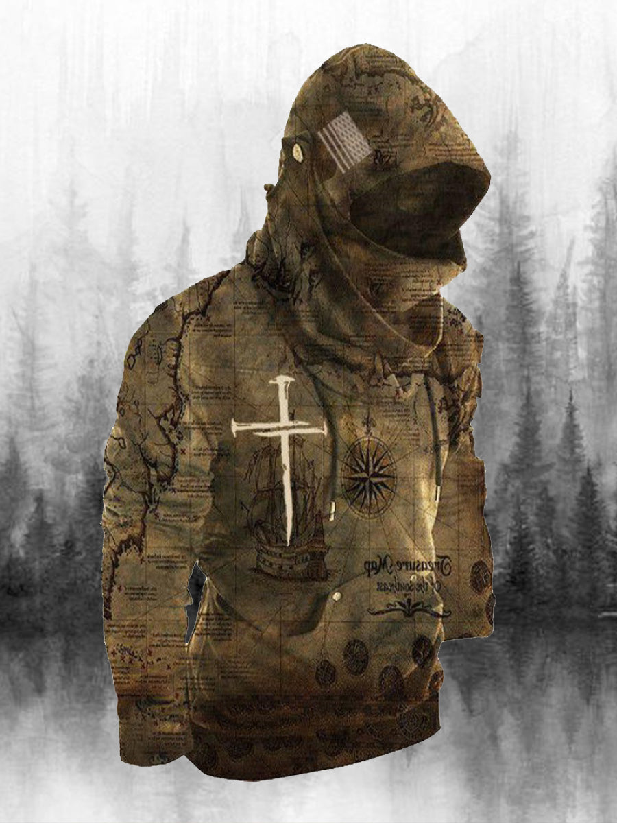 Мъжки ретро печат качулка суитчър комплект