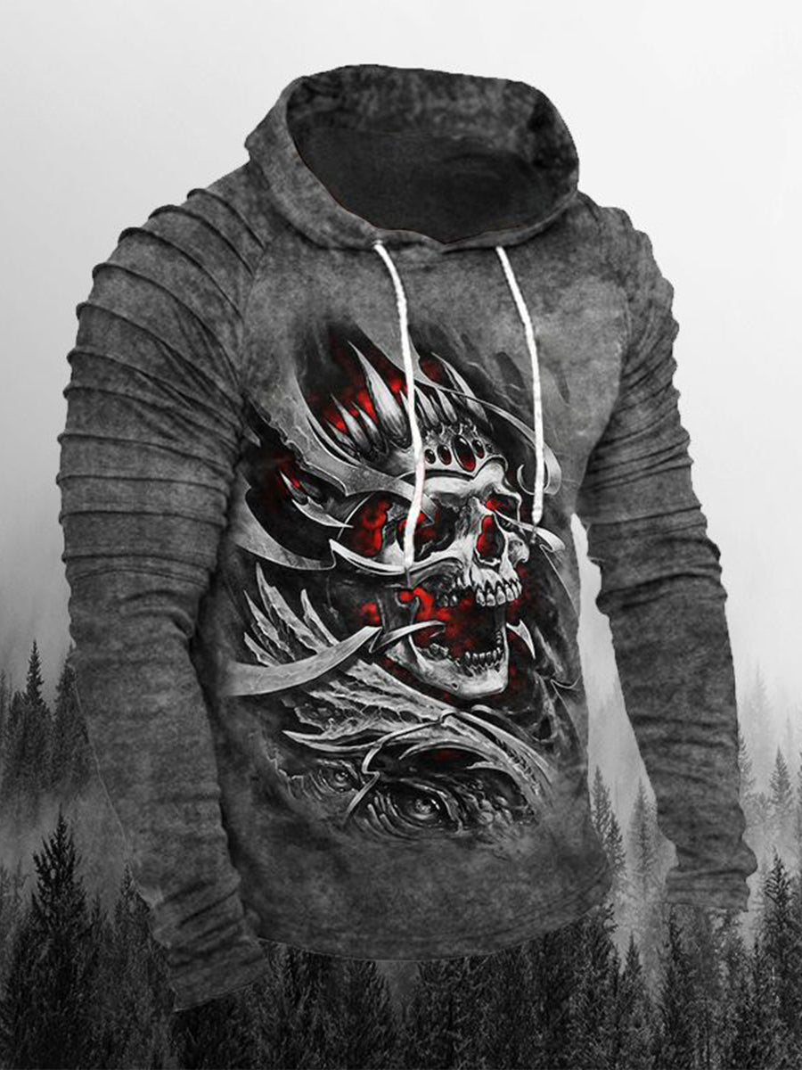 Мъжки ретро модерен качулка хлабав пуловер с дълги ръкави