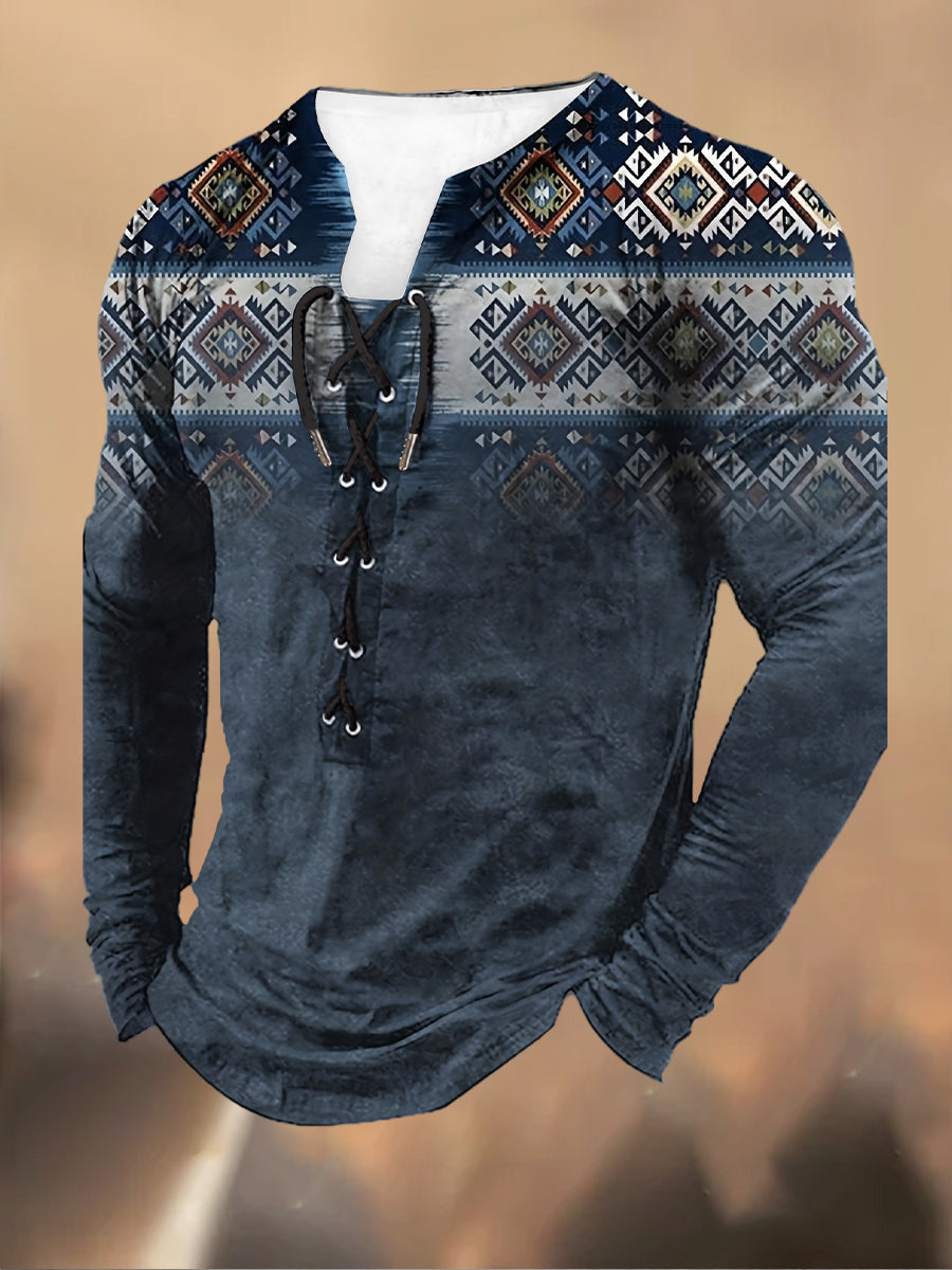 Мъжки ретро печат дантела с качулка с дълги ръкави случайни отгоре