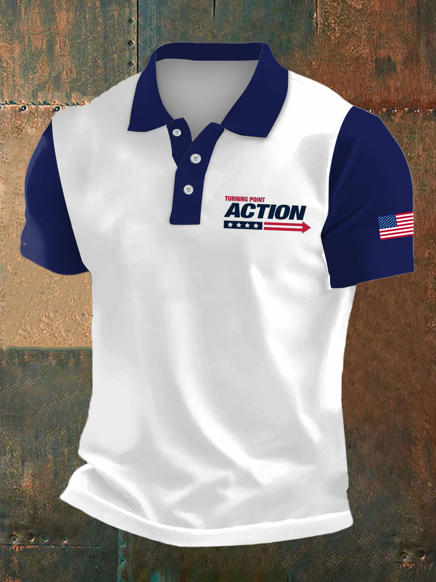 Повратна точка за мъже печат поло яка случайни къси ръкави риза