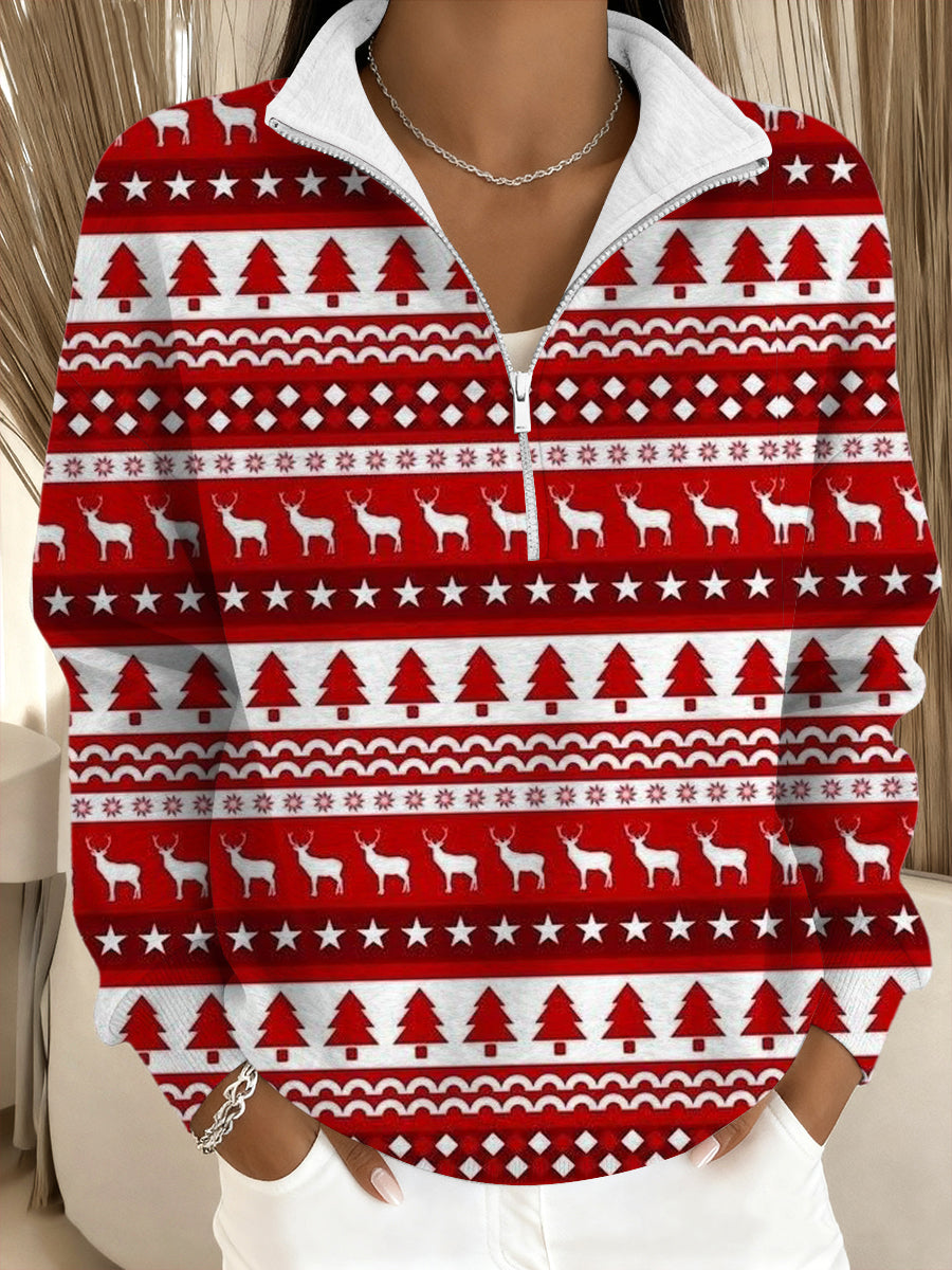 Жените реколта изкуство животински печат уютен плетен пуловер