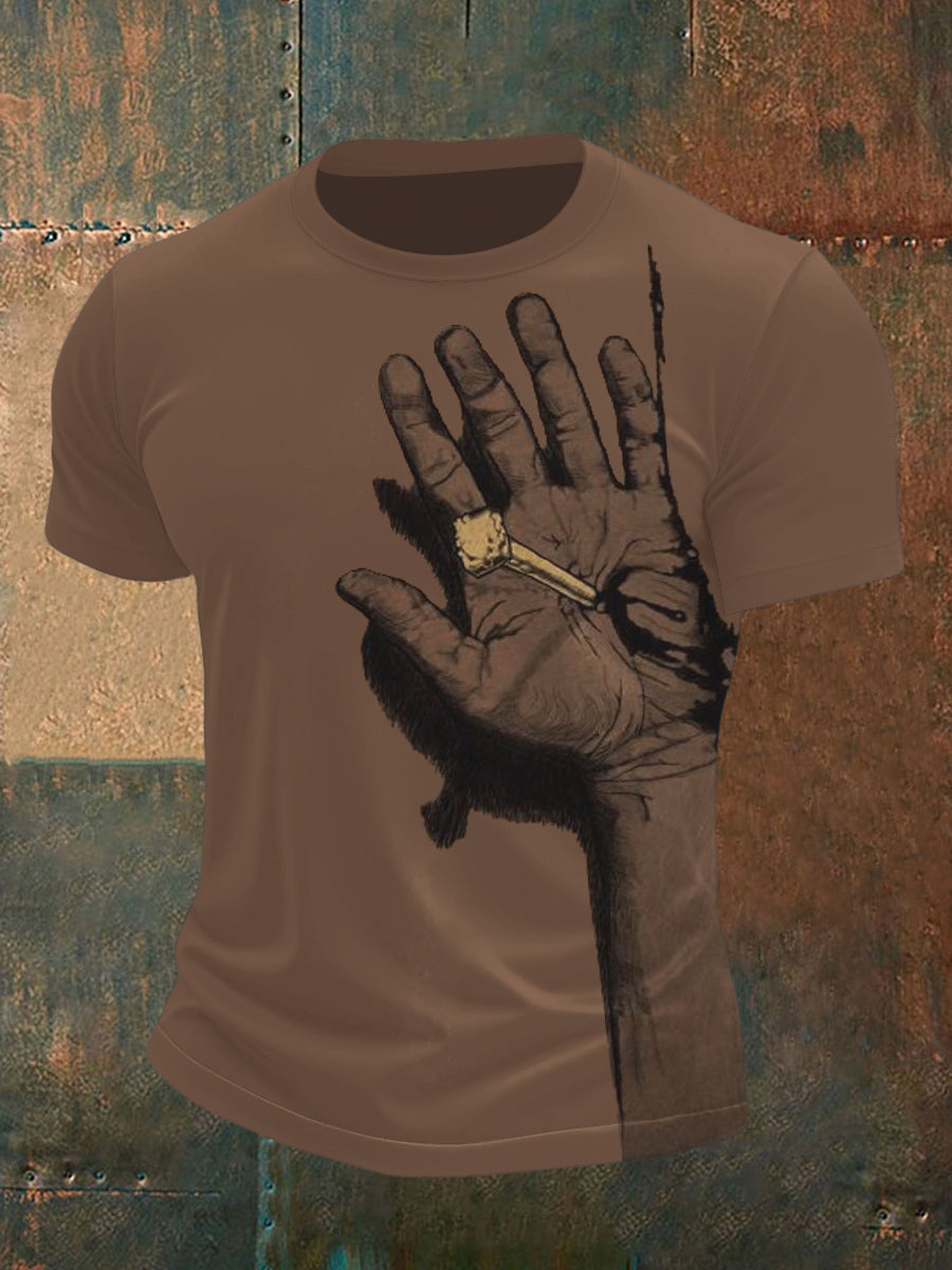 Реколта палмов елемент отпечатани с къс ръкав тениска