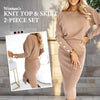 Пакетът включва: 1×Дамски комплект от 2 части – блуза и пола от трико