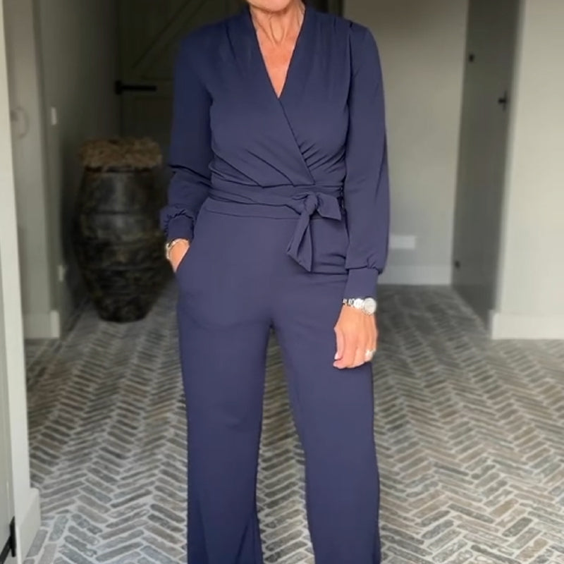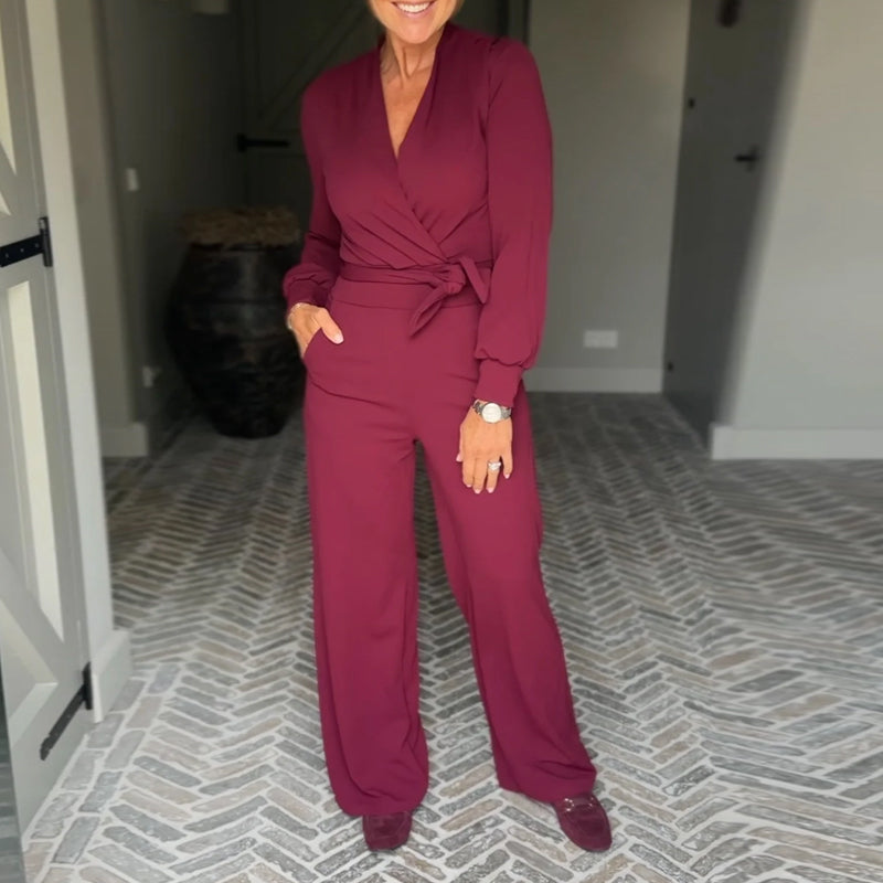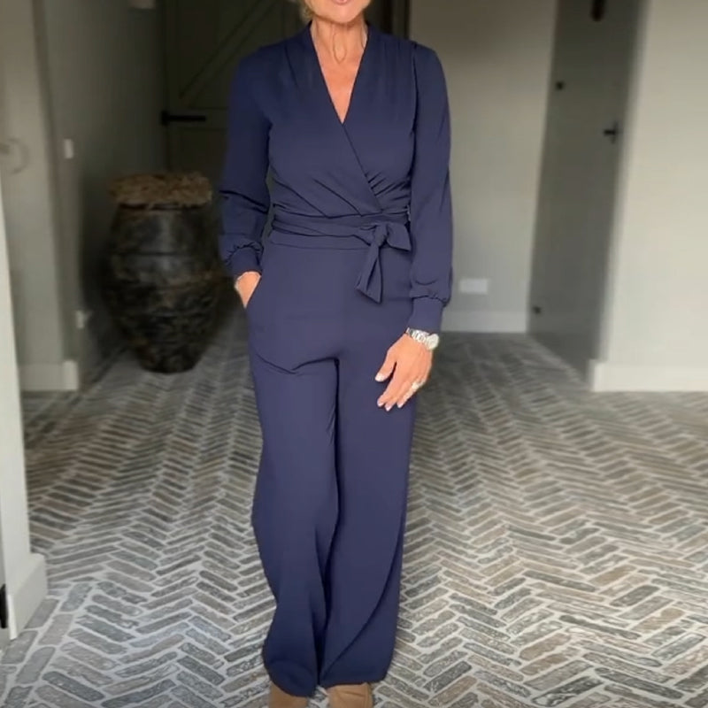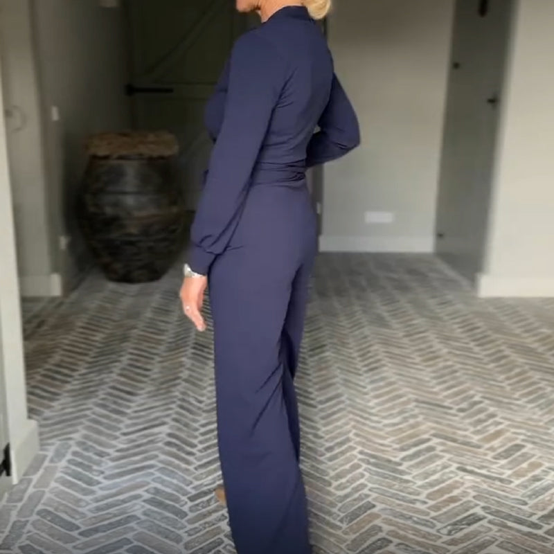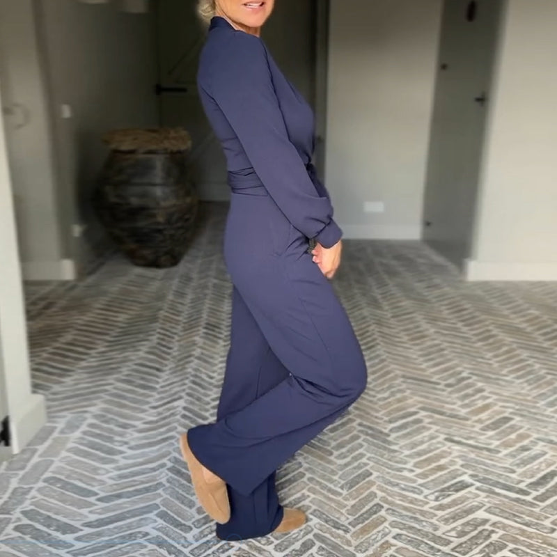 ЕЛЕГАНТЕН ДИЗАЙН: Този комбинезон има изтънчен деколте с V-образно деколте, което създава изтънчен и шик силует. Дизайнът е подходящ за различни поводи и подчертава цялостната ви визия с грациозност.